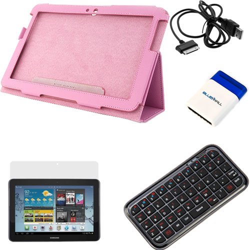 EveCase Pink Slimbook PU Leather Stand Case Cover plus Clear LCD Screen Protector, Mini Keyboard, USB Cable, Mini Brush for Samsung Galaxy Tab 2 Android TouchScreen Tablet (10.1inch, WiFi, P5100 / P5110) for Sale - Review & Buy at Cheap Price